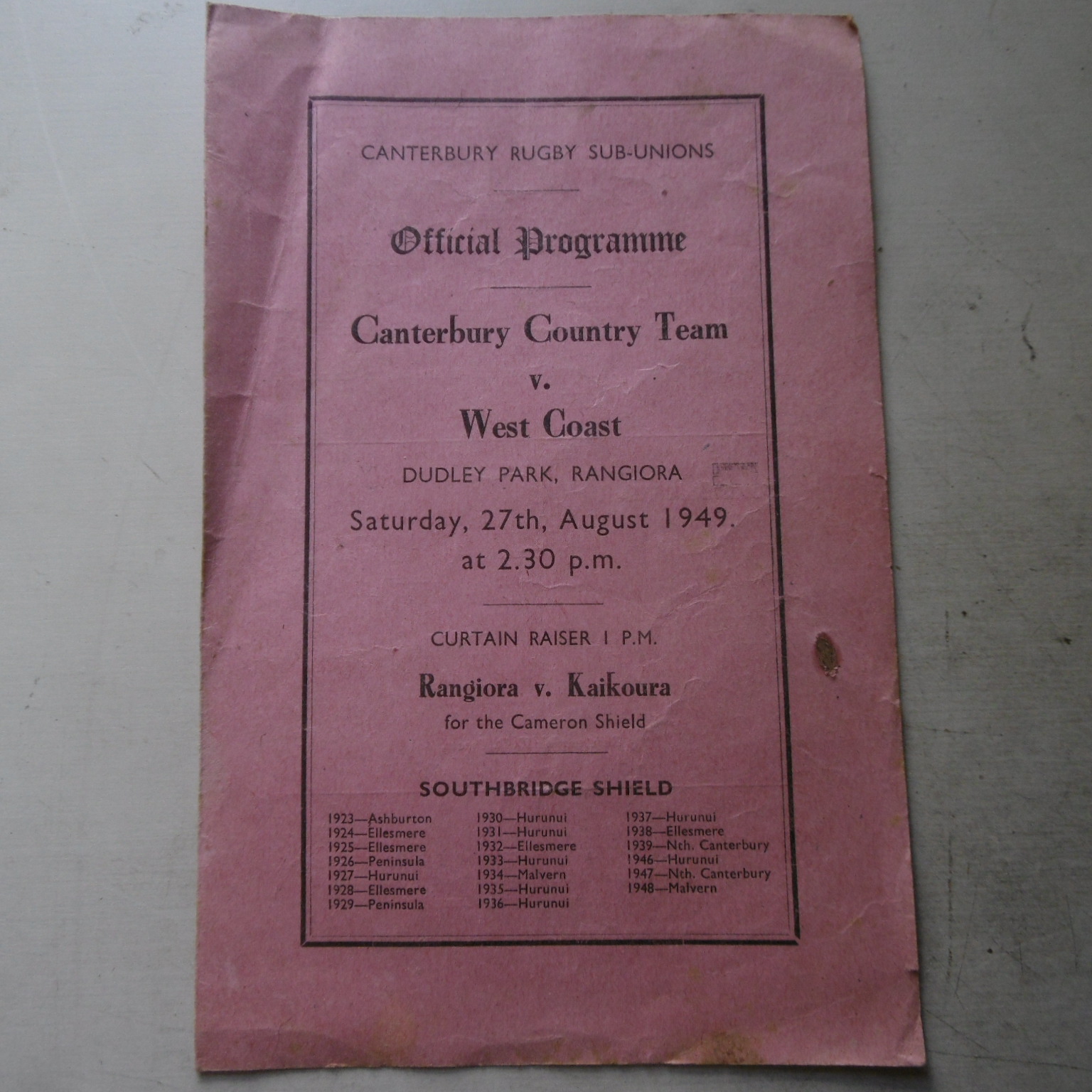 | Contest | Canterbury Country vs West Coast |